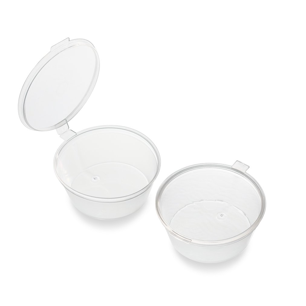- The 2oz Hinged Sauce Cup is designed for easy, secure portioning of sauces, dressings, and condiments.